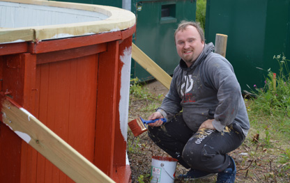 Jocke Juntti och Tony Orajärvi grundmålar sargen.
